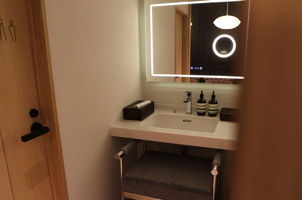 ライト調整が可能な大きな鏡、ゆったりとした椅子でメイク直しをしてお出かけ頂けます。アメニティも各種取り揃えております。