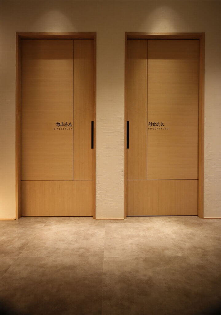 江戸時代から代々続く大川原暖簾と庵治石で玄関をしつらえました。日本の伝統美が心に豊かさをあたえ、喧騒を忘れさせてくれます。